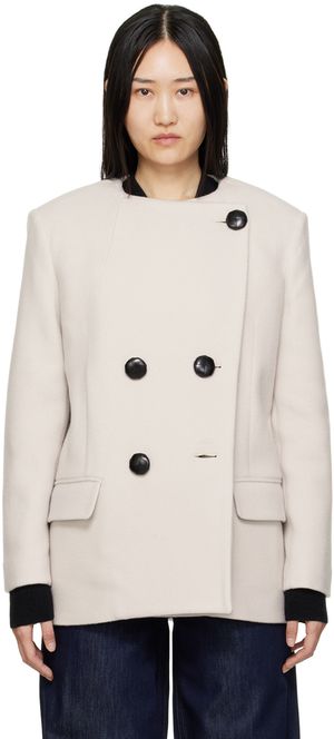 Brushed virgin wool and cashmere-blend twill jacket. · Crewneck · Double-breasted button closure · Flap pockets · Single-button barrel cuffs · Central vent at back hem · Partial satin lining Supplier color: Chalk