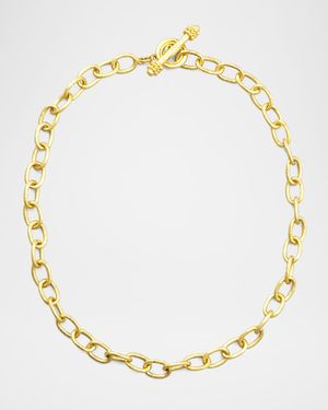 Approx. 17" length; 10mm wide 19karat yellow gold oval links with hammered finish Toggle closure with granulated end caps Imported
