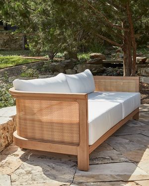 Featuring a rounded body with wicker panels, the Paragon Sofa is crafted with Neuwood®, a synthetic wood created using biomimicry to replicate natural wood at a molecular level. This innovative process merges the benefits of natural wood and wood composite while addressing their inherent limitations, resulting in an enduring, ecofriendly, zerowaste material. Cushions are upholstered in Sunbrella® acrylic with foam fill Waterproof, stainproof, and resists extreme climate Recyclable, regenerable, and nontoxic Impervious to insects Approx. 88.74"W x 35.1"D x 26"T Spot clean, wipe clean Weight, 130.7 lbs Imported Boxed weight, approximately 156.2 lbs