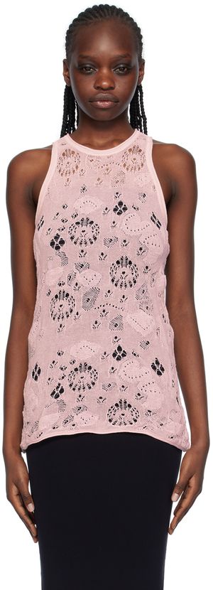 Semi-sheer open knit cotton- and nylon-blend tank top. Racer back. Supplier color: Blush pink